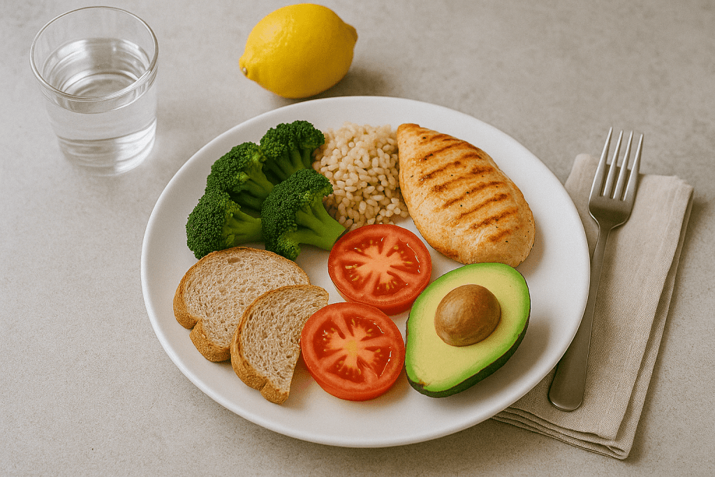 • Almoço: Arroz integral, batata ou inhame, frango grelhado ou peixe assado e legumes cozidos (como chuchu, abobrinha e cenoura).